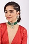 Featuring a Gold finish choker necklace studded with faux emeralds, set in mixed metal. It is paired with a pair of matching earrings.