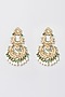 Featuring a pair of white finish chandbali earrings studded with jadau and pearls, set in mixed metal.