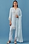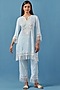 Featuring an aqua kurta in cotton modal base with crochet applique lace detailing. It is paired with palazzo pants and a dupatta having lace edging. Style it with dangler earrings and juttis for festive gatherings or pooja ceremonies.