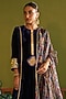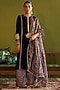 Featuring a blue kalidar kurta in velvet silk, satin silk and organza base with print, vintage kutch embroidery appliques and gota detailing. It is paired with printed palazzo pants and an organza dupatta. Accentuate with dangler earrings and heels for a wedding or festive occasion.