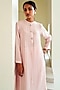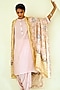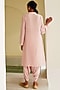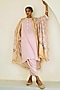 Featuring a pink kurta in bemberg base with pintuck detailing, side pockets and resin brooches. It is paired with matching draped salwar pants and a printed dupatta having beaded tassels.