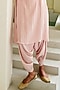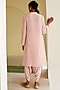 Featuring a pink kurta in bemberg base with pintuck detailing, side pockets and resin brooches. It is paired with matching draped salwar pants.