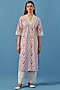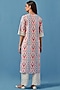 Featuring a pink kurta in lawn cotton base with crochet lace detailing. It is paired with palazzo pants. Style it with dangler earrings and juttis for festive gatherings or pooja ceremonies.