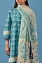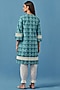 Featuring a turquoise kurta in lawn cotton base with crochet lace detailing. It is paired with palazzo pants. Style it with dangler earrings and juttis for festive gatherings or pooja ceremonies.