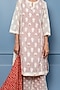 White & Red Lace Embroidered Kurta Set