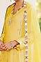 Featuring a yellow dupatta in chiffon base with gold strip borders and print detailing. This contains one piece only.