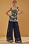 Featuring a blue top in viscose base with floral applique work. It is paired with linen wide-leg trousers. Accentuate it with dangler earrings and heels for a complete look.