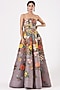 Featuring a burnt lavender gown in dupion base with 3D applique embroidery. It comes with a cancan.