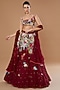 Featuring a red lehenga in organza base with embroidery. It is paired with a blouse and a dupatta. Accessorize it with dangler earrings and block heels to accentuate your look. Perfect wear for a bridesmaid look.