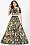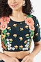 Featuring a teal blue top in raw silk and organza base with 3D applique embroidery. It is paired with a matching embroidered skirt.