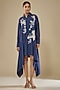 Featuring a blue mini dress in chanderi base with applique work. Accentuate it with statement jewellery and heels for a bruch or a cocktail soiree.