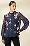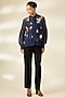 Featuring a blue tunic in organza base with laser-cut applique details. It is paired with a slip. Accentuate it with pants, earrings and heels for a brunch or casual wear.
