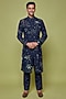 Blue Matka Silk 3D Applique Hand Embroidered Sherwani Set