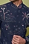 Featuring a blue sherwani in matka silk base with 3D applique hand embroidery. It is paired with pants. Perfect wear for a wedding or engagement ceremony. Perfect wear for sangeet ceremonies.