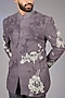 Featuring a deep mauve bandhgala jacket in matka silk base with embroidery. It is paired with pants. Accentuate it with loafers or embroidered juttis and a pocket square, ideal for receptions, cocktail parties or formal festive occasions.