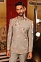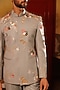 Featuring a green bandhgala in suiting base with applique and hand embroidery. It is paired with trousers. Style it with mojaris for a reception, mehendi, wedding, sangeet or engagement wear.