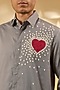 Featuring a grey shirt in cotton satin base with hand embroidery. Style with beige chinos and minimal accessories, ideal for evening events or art shows.