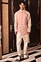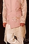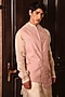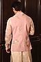 Featuring a soft pink bundi jacket in suiting base with applique and hand embroidery. Style it with a kurta set and mojaris for a wedding, sangeet or engagement wear.