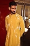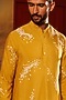 Featuring a yellow kurta in katan silk base with applique and hand embroidery. It is paired with pants. Style it with mojaris for a festive occasion, cultural event, haldi, wedding or engagement wear.