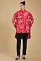 Featuring a red tunic in chanderi base. Style it with straight pants, golden hoops, metallic heels and a clutch for parties or evening soirees.