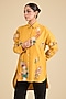 Featuring a yellow tunic in chanderi base. Style with trousers, heels, and minimal jewellery for a polished look. Ideal for festive gatherings, office events, and elegant evening outings.