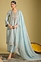 Featuring a blue kurta in katan tissue base with zardosi hand embroidery. It is paired with chanderi silk palazzo pants and an organza silk dupatta. Style it with statement jewellery, block heels and an embellished clutch for festive occasions or wedding ceremonies.
