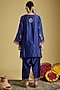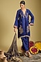 Featuring a deep blue kurta in chanderi silk base with bird motifs, floral and zardosi work, including pearl tassel hanging. It is paired with chanderi silk salwar pants and an organa silk tissue dupatta. Style it with statement jewellery, block heels and an embellished clutch for festive occasions or wedding ceremonies.