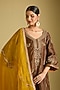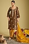 Featuring a golden kurta in katan silk tissue base with paisley motifs and zardosi work. It is paired with yellow chanderi salwar pants and an organza tissue dupatta. Style it with statement jewellery, block heels and an embellished clutch for festive occasions or wedding ceremonies.