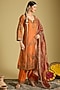 Featuring an orange kurta in katan silk tissue base with elephant motifs, dabka, sequins and bead embellishments. It is paired with chanderi silk salwar pants and an organa silk tissue dupatta. Style it with statement jewellery, block heels and an embellished clutch for festive occasions or wedding ceremonies.