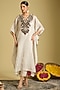 Featuring a silver kaftan in katan silk tissue base with zardosi work. It is paired with cotton voile inner and glazed cotton palazzo pants. Style it with statement jewellery, block heels and an embellished clutch for festive occasions or wedding ceremonies.