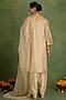 Featuring a beige kurta in chanderi base with gota embroidery. It is paired with salwar pants, a potli and an organza dupatta. Accentuate it with statement earrings and block heels for wedding ceremonies.