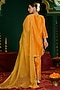 Featuring a marigold orange A-line short Choga in chanderi base with three-quarter sleeves, gota embroidery and neck design detail. It is paired with salwar pants, a sheer organza dupatta and a potli. Accentuate it with statement jewellery and heels for a festive occasion, an intimate pooja or sangeet ceremony.
