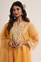 Featuring a peachy orange choga kurta in chanderi silk base with embroidery. It is paired with satin salwar pants and an organza embroidered dupatta. Accentuate it with dangler earrings and heels for a festive occasion or sangeet ceremony.
