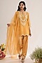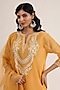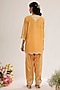 Featuring a peachy orange short A-line kurta in chanderi silk base with embroidery. It is paired with satin salwar pants and an organza embroidered dupatta. Accentuate it with dangler earrings and heels for a festive occasion or sangeet ceremony.