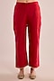 Featuring a red A-line kurta in chanderi base with gota patti embroidery. It is paired with pants and an organza dupatta. Accentuate it with statement earrings, a sleek braid, and metallic heels, ideal for sangeet ceremonies or weddings.