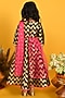 Featuring a black gown for girls in banarasi jacquard base with print and an attached sequins net magenta dupatta.