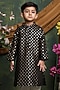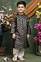 Featuring a black kurta for boys in cotton blend base with print. It is paired with white pants. Style it with a watch and pair of mojris for a festive occasion or sangeet ceremony.