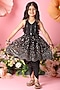 Featuring a black sleeveless flared kurta for girls in net base with sequins embellishments. It is paired with dhoti pants. Style it with cute hair accessories and sandals for a festive occasion or sangeet ceremony.