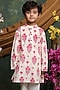 Cream Pure Cotton Floral Block Printed Kurta Set For Boys