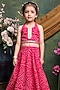 Featuring a magenta lehenga for girls in cotton base with bandhani print. It is paired with a printed choli. Accessorize it with matching hair accessories and sandals for a stylish ensemble, ideal for any festive occasion or wedding ceremony.