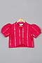 Magenta Net Mirror Embroidered Lehenga Set For Girls