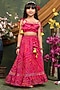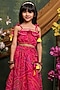 Featuring a magenta lehenga for girls in poly georgette base with bandhani print. It is paired with a printed choli. Accessorize it with matching hair accessories and sandals for a stylish ensemble, ideal for any festive occasion or wedding ceremony.