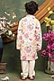 Featuring a multi-colored kurta for boys in pure cotton base with floral print. It is paired with white pants. Style it with a watch and pair of mojris for a festive occasion or sangeet ceremony.