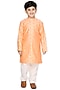 Featuring an orange kurta for boys in art silk base with embroidery. It is paired with contrasting pure cotton pyjama pants.