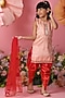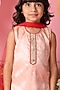 Peach Silk Blend Embroidered Kurta Set For Girls