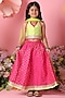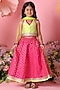 Featuring a pink lehenga for girls in silk blend base with print. It is paired with a green crop top and a dupatta. Accessorize it with matching hair accessories and sandals for a stylish ensemble, ideal for any festive occasion or wedding ceremony.