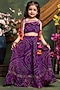 Purple Poly Georgette Bandhani Printed Lehenga Set For Girls