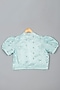 Sky Blue Net Mirror Embroidered Lehenga Set For Girls