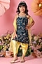 Featuring a teal blue kurta for girls in silk blend base with embroidery. It is paired with yellow dhoti pants and a net dupatta. Accessorize it with matching hair accessories and sandals for a stylish ensemble, ideal for any festive occasion.