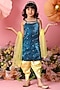 Featuring a teal blue kurta for girls in silk blend base with embroidery. It is paired with yellow dhoti pants and a dupatta. Accessorize it with matching hair accessories and sandals for a stylish ensemble, ideal for any festive occasion.